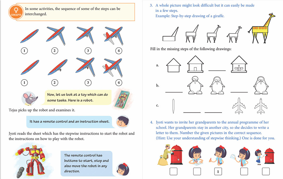 Each chapter starts with a particular situation or a real-life scenario, which is developed over the course of the chapter to teach a particular concept or develop a particular skill in students. The topics, activities and worksheets are integrated with other subjects or real-life scenarios.